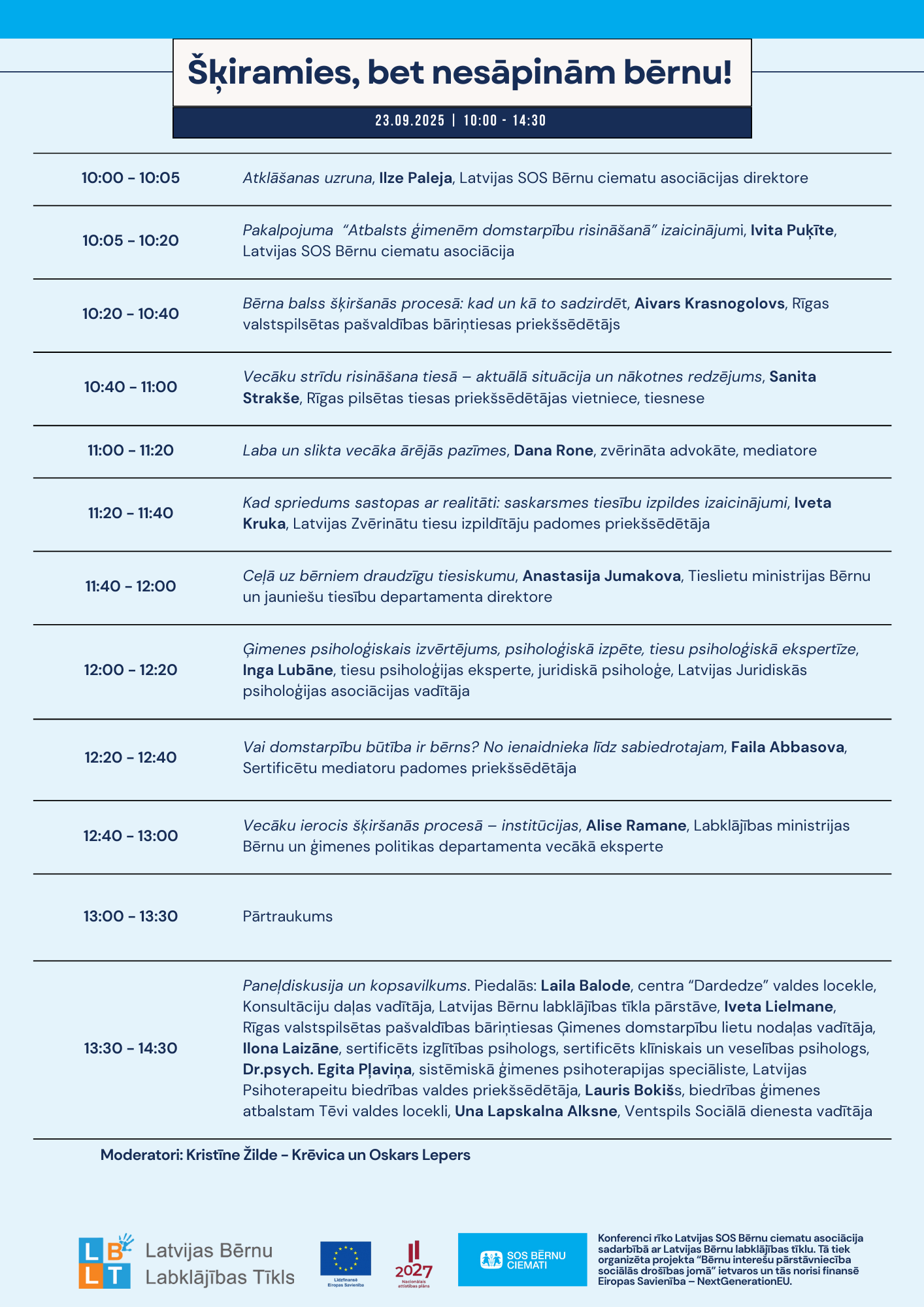 Konferenci rīko Latvijas SOS Bērnu ciematu asociācija sadarbībā ar Latvijas Bērnu labklājības tīklu. Tā tiek organizēta projekta “Bērnu interešu pārstāvniecība sociālās drošības jomā” ietvaros un tās norisi finansē Eiropas Savienība – NextGenerationEU.