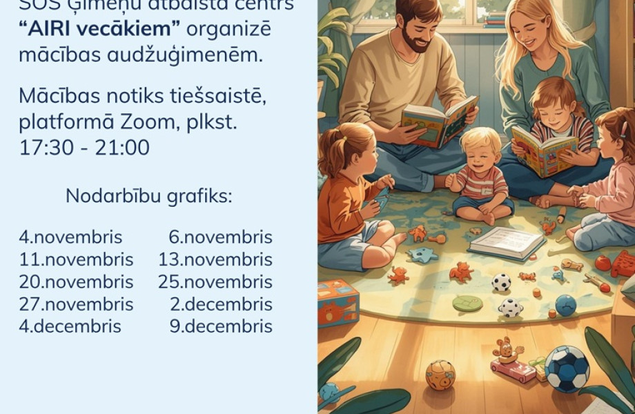 Aicinām topošos audžuvecākus un adoptētājus pieteikties mācībām "AIRI vecākiem".